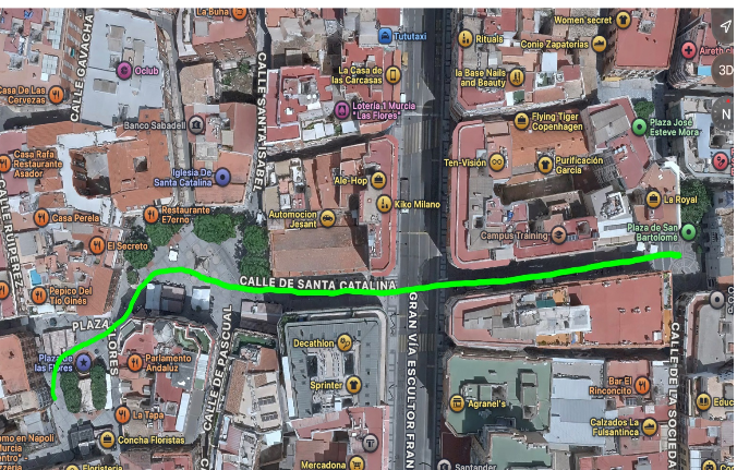 Recorrido: C/Arenal => Glorieta de España => C/Tomas Maestre => C/Jara Carillo