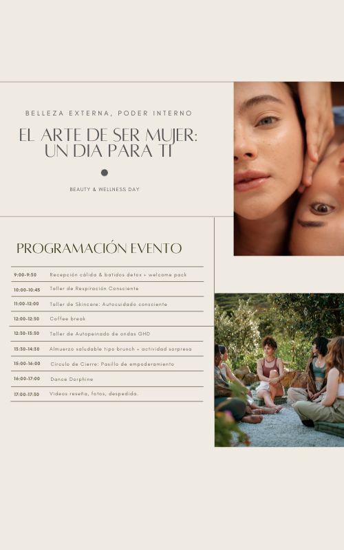 Es una experiencia de un día diseñada para mujeres que desean reconectar con su belleza auténtica y su fuerza interior. A través de talleres sensoriales, técnicas de autocuidado profundo y momentos de inspiración, este evento celebra la integridad de la mujer: su cuerpo, su piel, su energía, su historia.