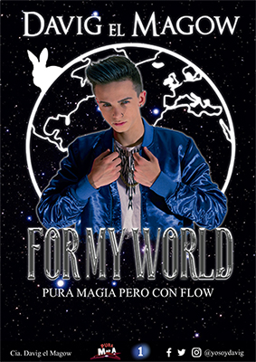 “For my world” es la mezcla perfecta entre las grandes ilusiones y la magia cómica. Aunque este show intenta ir un poco más allá. Prepárense para disfrutar viendo personas cortadas por la mitad, levitaciones, desapariciones… y, sin dudarlo, acompañado de ese humor travieso que caracteriza al artista. También cuenta con una actual y fresca selección musical y con un diseño de luces y efectos especiales espectaculares. Pero además de esto, el show contiene algunos mensajes ocultos que creemos que son vitales para un mundo mejor.