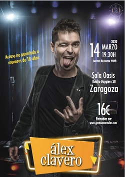 Monologos con ÁLEX CLAVERO SALA OASIS ZARAGOZA Hora de show: 19:30 Apertura de puertas: 19:00 Sólo mayores 18 años