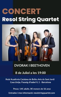 El Quartet de Corda Resol interpretarà: Beethoven Op.18 n.2 Dvorak Quartet n.12 Esperem veure’s-hi!