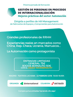 La primera jornada de formación en la gestión de personas en procesos de internacionalización. Dirigida a profesionales de RRHH de Fabricantes de Equipos y Componentes para Automoción.
